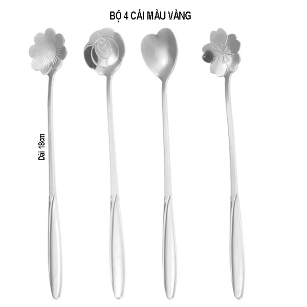 Thìa cafe hoa văn: hoa anh đào, hoa hướng dương, hoa hồng, trái tim
