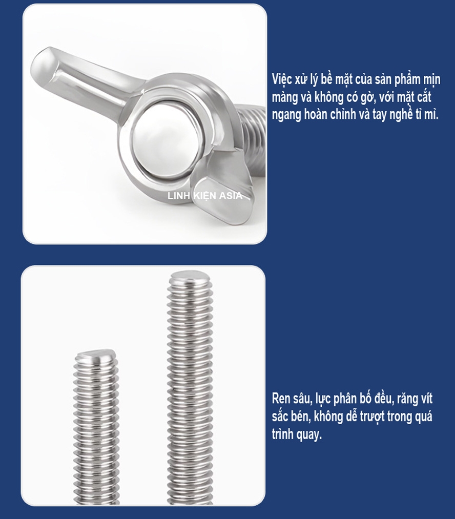Ren sâu, lực phân bố đều, răng vít sắc bén, không dễ trượt trong quá trình quay.