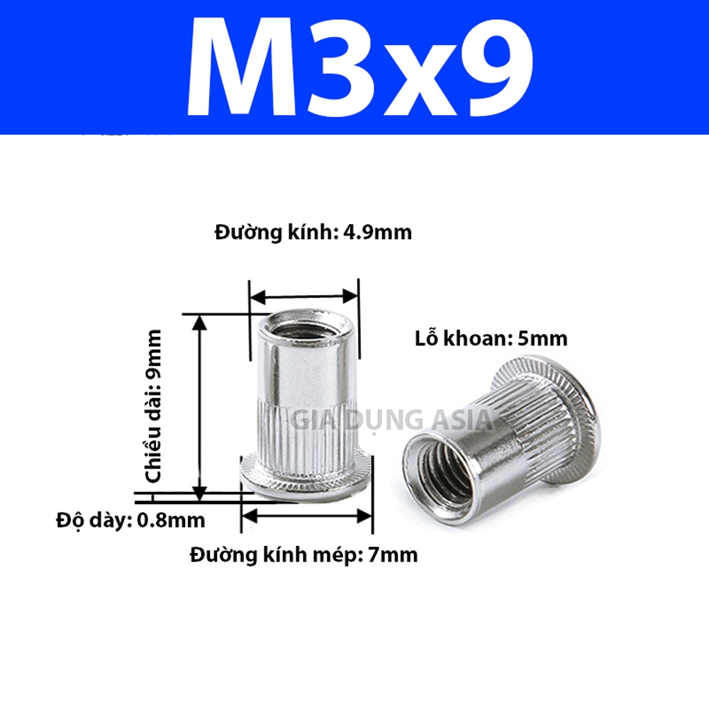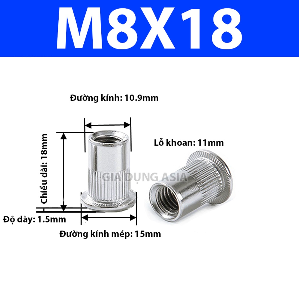 • Ren trong: đa dạng kích thước M3, M4, M5, M6, M8, M10, M12… phù hợp nhiều nhu cầu.