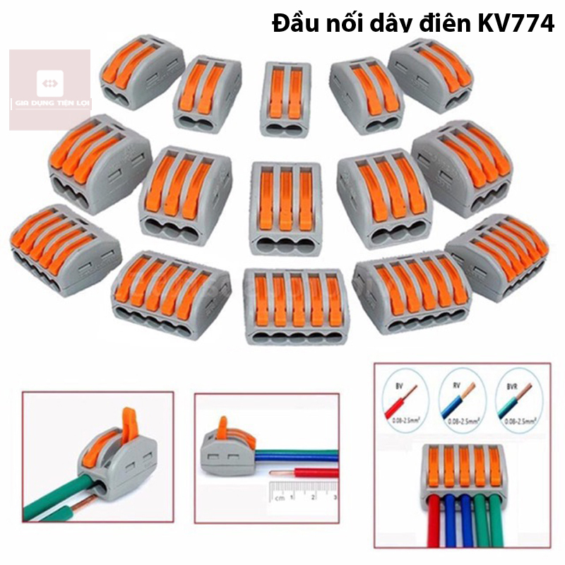 Đầu nối dây điện KV774 CH2 giúp bạn nối các dây điện với nhau trong vòng 3 giây, không cần kìm, không cần băng dính cách điện và việc tháo dây khỏi đầu nối khi không cần đến cũng dễ dàng như lúc lắp vào. Hỗ trợ nối cùng lúc từ 2-5 dây điện đồng thời, mối nối đẹp, gọn gàng, an toàn, chống chạm chập điện, cháy nổi trong các hộp âm tường hoặc hộp nổi….