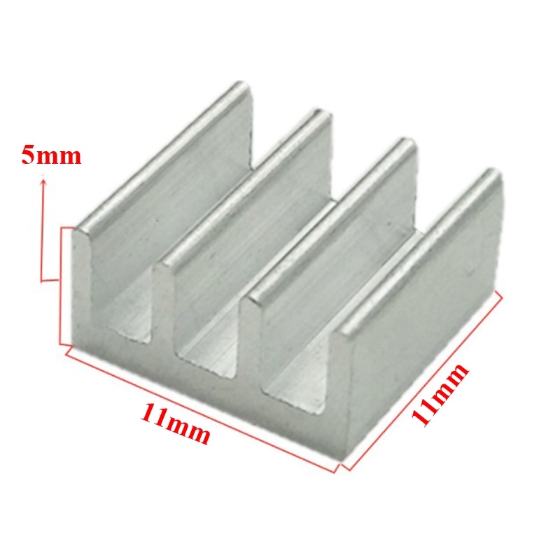 TÍNH NĂNG SẢN PHẨM- Nhôm tản nhiệt được tạo nên chủ yếu từ kim loại nhôm (Kí hiệu hoá học của nhôm là: Al). Các cánh tản nhiệt của nó giúp tăng hiệu suất tản nhiệt đồng thời phần đế phẳng và nhẵn tiếp xúc hoàn hảo với bề mặt linh kiện như CPU, Chip, IC,... giúp cho tản nhiệt được hiệu quả.- Nhôm tản nhiệt thường được sử dụng để tản nhiệt cho những linh kiện công suất trong mạch điện tử như mosfet, IGBT, transistor, diode....- Tùy thuộc vào lượng công suất nhiệt tổn hao trên linh kiện mà chúng ta sẽ sử dụng những loại nhôm tản nhiệt có kích thước phù hợp.THÔNG SỐ KĨ THUẬT- Chất liệu: Nhôm- Màu sắc: Xám bạc- Kích thước:11*11*5MM14*14*6MM28*28*11MMĐể tăng khả năng tản nhiệt của đế nhôm, các bạn nên sử dụng thêm keo tản nhiệt, tham khảo link bên dưới.https://shopee.vn/Keo-T%E1%BA%A3n-Nhi%E1%BB%87t-%E1%BB%90ng-Xi-lanh-L%C3%A0m-M%C3%A1t-CPU-chip-led-m%E1%BA%A1ch-%C4%91i%E1%BB%87n-i.398421713.14858502521?sp_atk=a72e3f6e-c91e-4c37-b7c6-fff347f72b88
