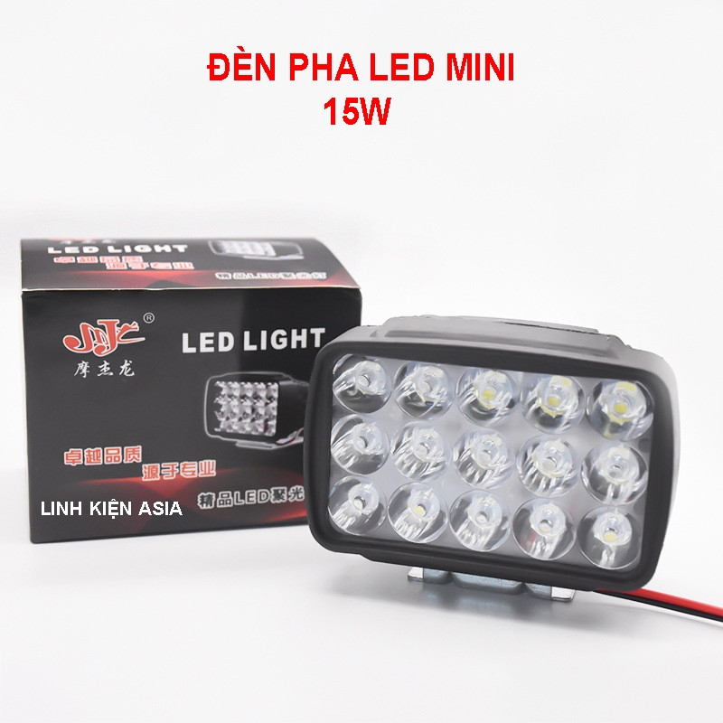 Đèn pha led mini 15W, đèn trợ sáng 15 mắt led điện áp 12V