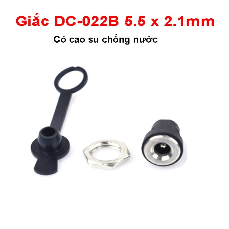- Thông số kỹ thuật:+ Jack sạc DC, đầu sạc DC 5.5*2.1mm có răng vặn ốc ngoài, kèm cao su chống nước+ Jack sạc DC, đầu sạc DC 3.5*1.3mm có răng vặn ốc ngoài, không có cao su.+ Kích thước Jack: 5.5x2.1mm, 3.5x1.3mm+ Chất liệu: Nhựa+ Dòng Chịu Tải Tối Đa: 60v - 5A+ Nhiệt độ sử dụng: -40 độ --> 70 Độ + Đường Kính Lỗ Khoan: 7,8mm- Chân dài là cực âm, chấn ngắn là cực dương- Có Cao Su Chống Nước bảo vệ linh kiện. (đối với loại DC-022B)