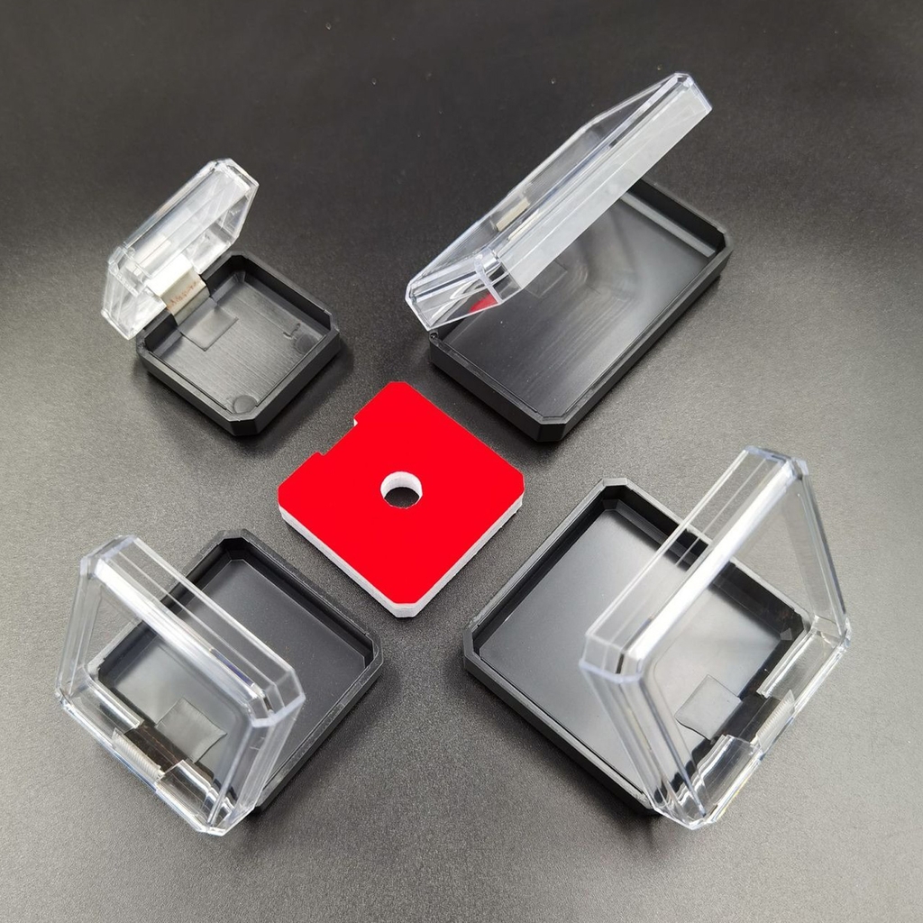 Hãng/Loại: hộp mica nhựa cứng, thiết kế vuông nhỏ gọn.