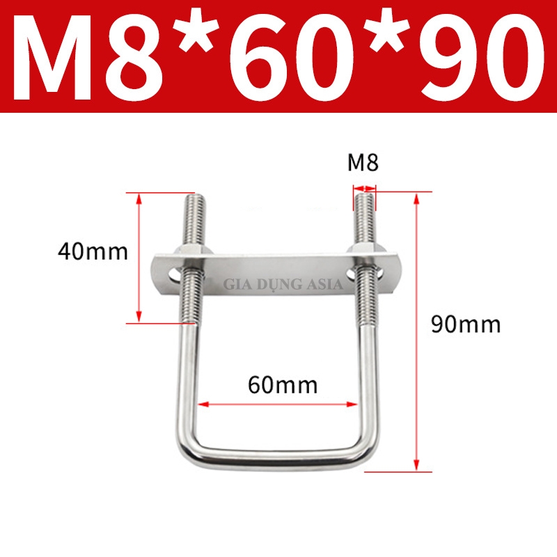 Thiết kế chuẩn U vuông – phù hợp bắt ống vuông, thanh sắt, thanh inox, trụ cột, hộp điện, v.v.