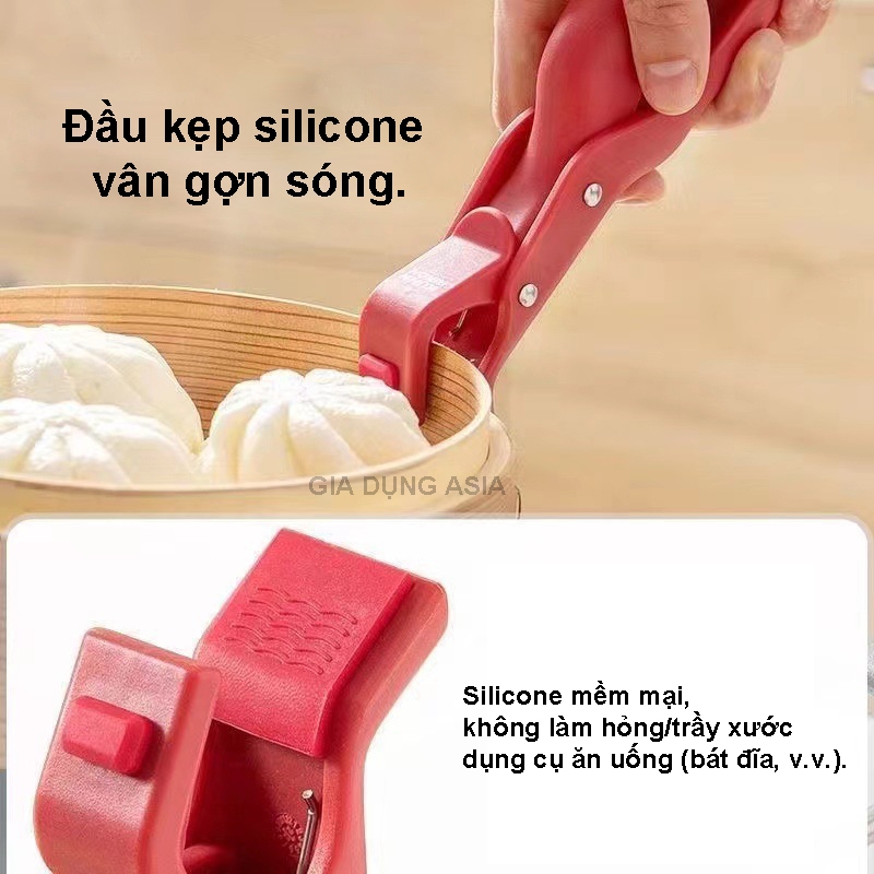 Thiết kế thông minh, chống bỏng hiệu quả: Tay cầm chắc chắn, phần kẹp được thiết kế đặc biệt để giữ chặt tô, dĩa nóng một cách an toàn, giúp bạn tránh xa nguy cơ bị bỏng do hơi nước hoặc tiếp xúc trực tiếp.