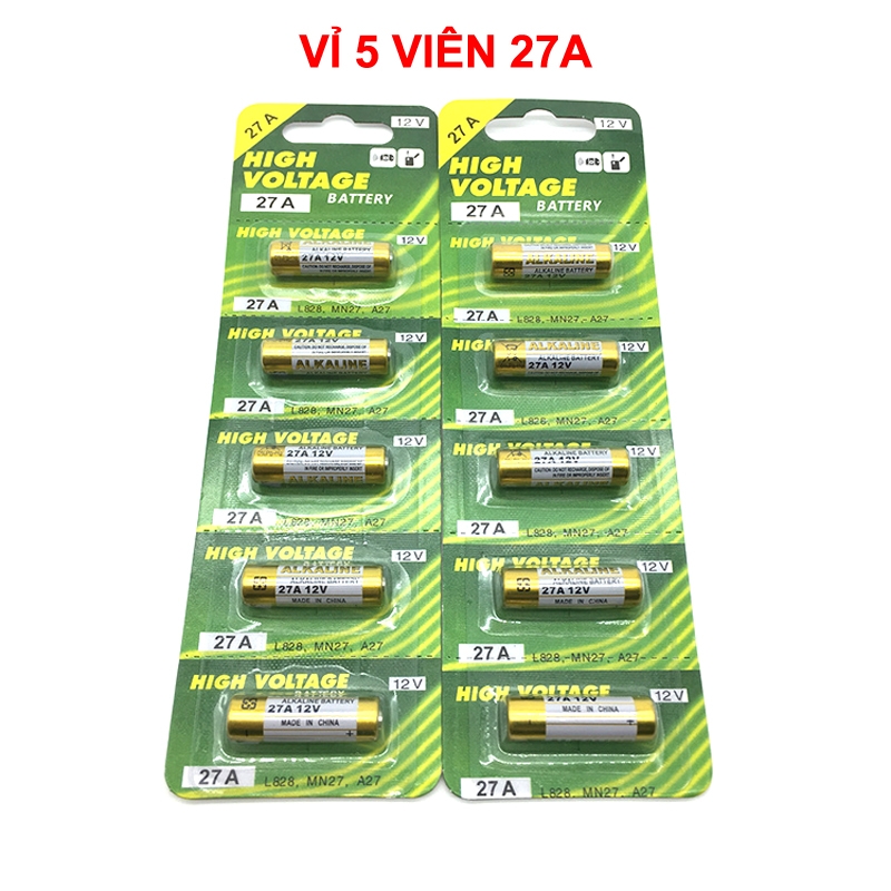 Kích thước: pin 27A: đường kính 8mm * dài 28mm, điện áp 12V