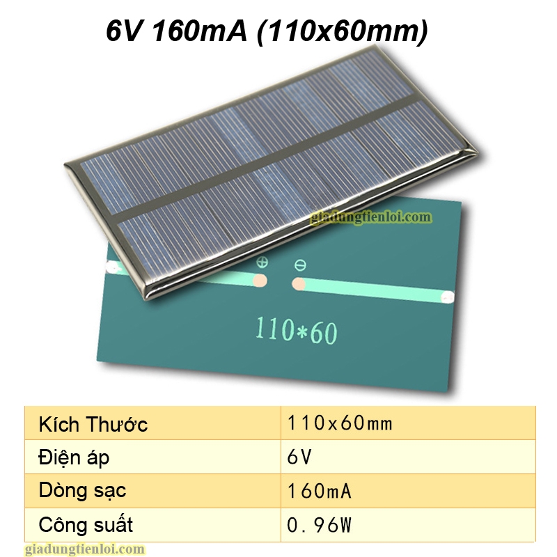 Thông số kỹ thuật phân loại theo kích thước, điện áp và dòng sạc của pin mặt trời mini: